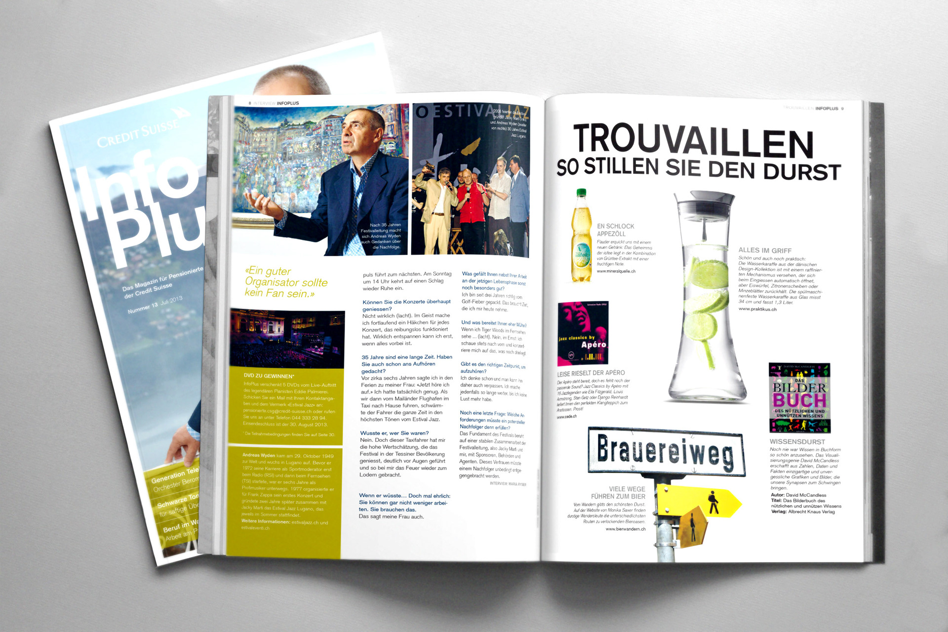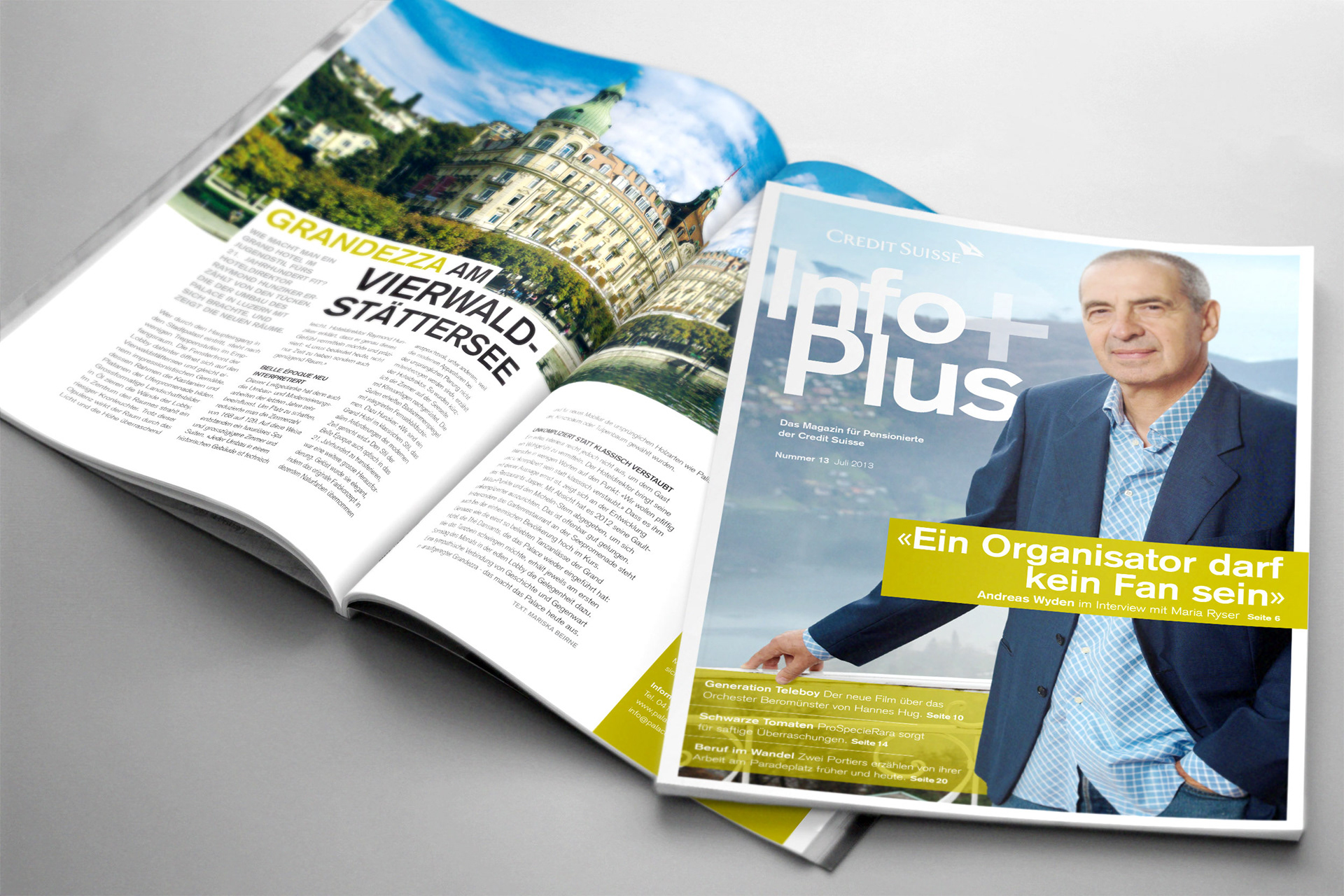 Redesign und Layout für das Pensionierten Magazin der Credit Suisse im Auftrag von Axel Springer Corporate Media. Creative Director: Sebastian Adrian Art Director: Rudi-Renoir Appoldt