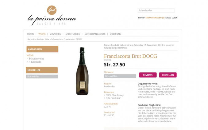 La Prima Donna is a onlineshop for italien beverages and cigars.